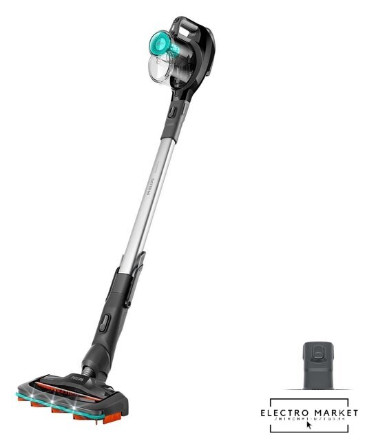 вертикальный 2-в-1, аккумулятор, потребление: 450 Вт, регулировка мощности, турбощетка, шум 80 дБ
