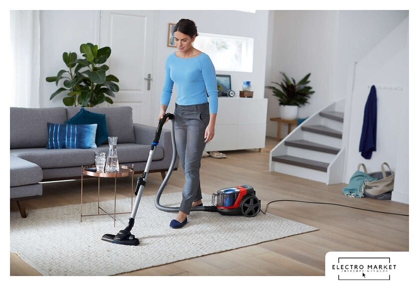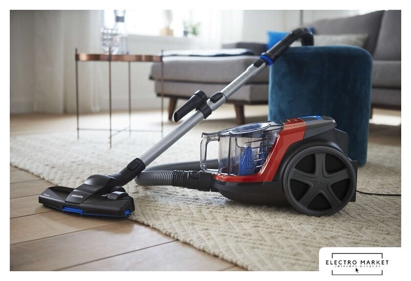 бытовой для сухой уборки, пылесборник: контейнер, мощность всасывания: 430 Вт, потребление: 2200 Вт, труба: сталь, регулировка мощности на ручке, шум 79 дБ