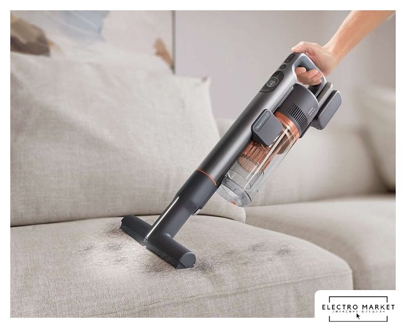 вертикальный с влажной уборкой, аккумулятор, регулировка мощности, турбощетка, док-станция без зарядки, шум 76 дБ