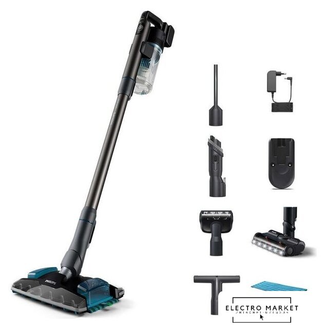 вертикальный с влажной уборкой, аккумулятор, регулировка мощности, турбощетка, шум 84 дБ