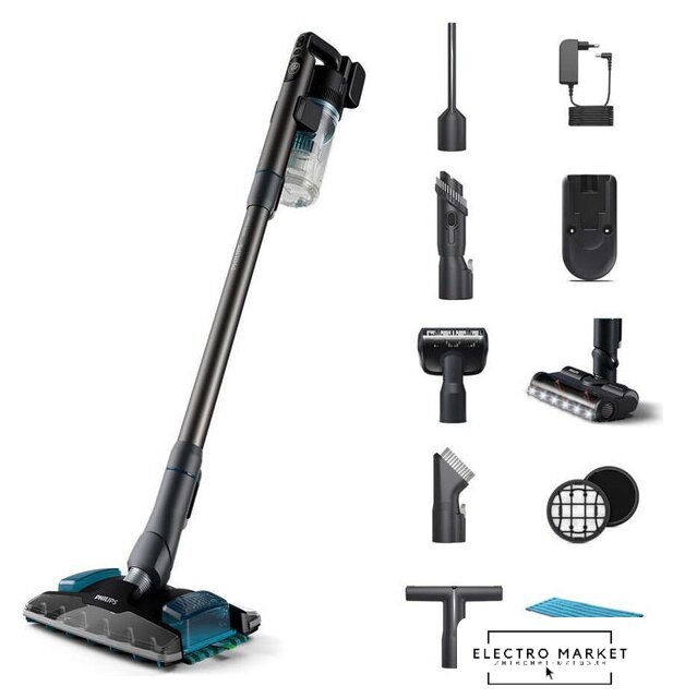 вертикальный с влажной уборкой, аккумулятор, потребление: 660 Вт, регулировка мощности, турбощетка, док-станция с зарядкой, шум 83 дБ