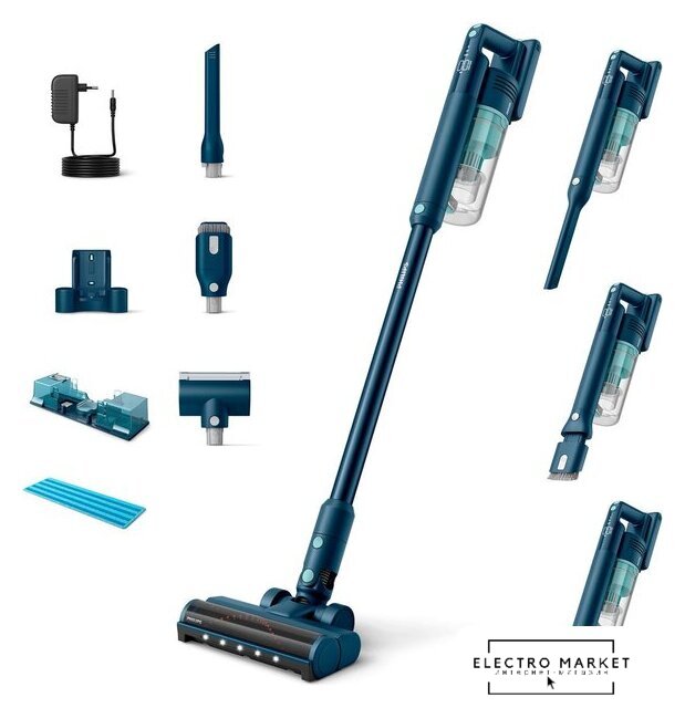 вертикальный с влажной уборкой, аккумулятор, регулировка мощности, турбощетка, шум 80 дБ