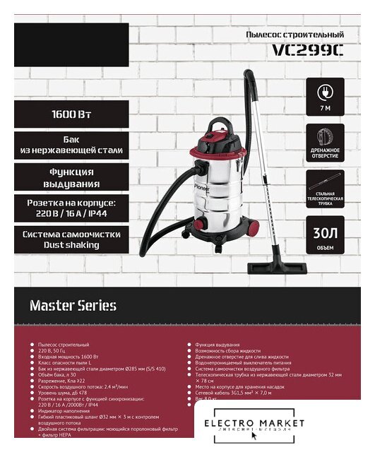 моющий/строительный, сеть, потребление: 1300 Вт, шум 87 дБ
