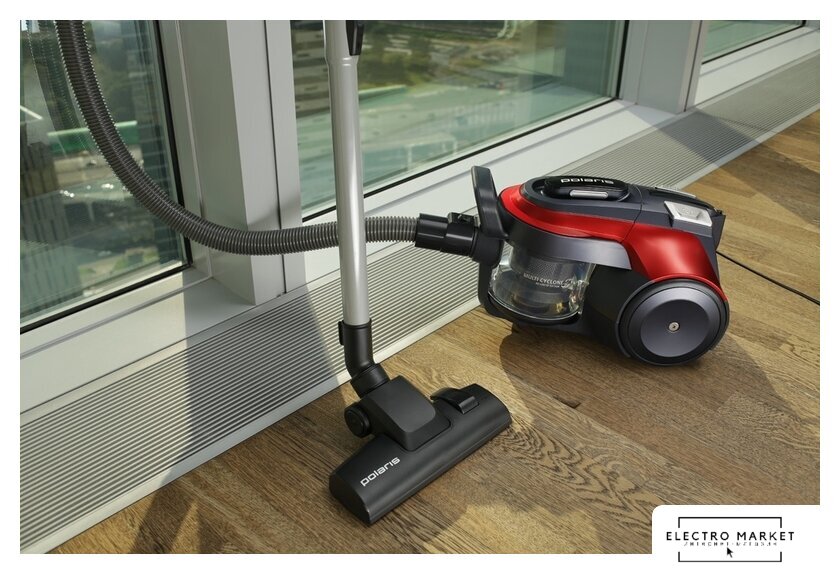 бытовой для сухой уборки, пылесборник: контейнер, мощность всасывания: 380 Вт, потребление: 1800 Вт, труба: сталь, регулировка мощности на ручке, шум 87 дБ