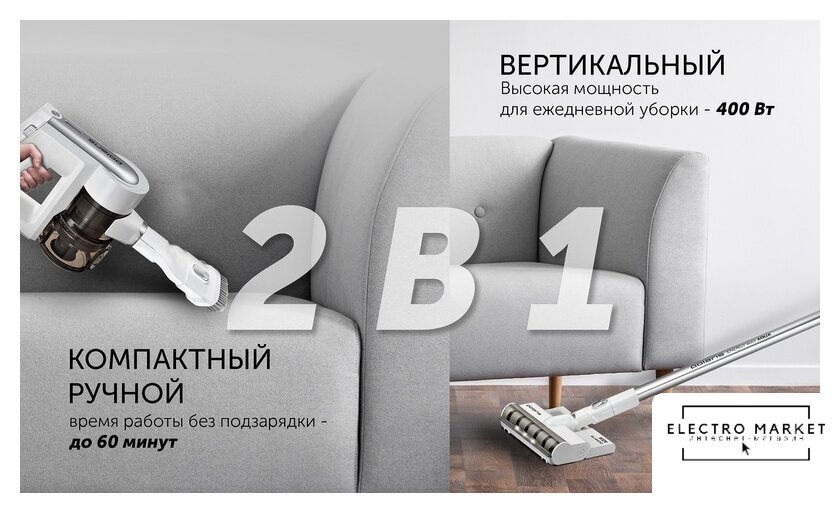 вертикальный 2-в-1, аккумулятор, без регулировки мощности, шум 83 дБ