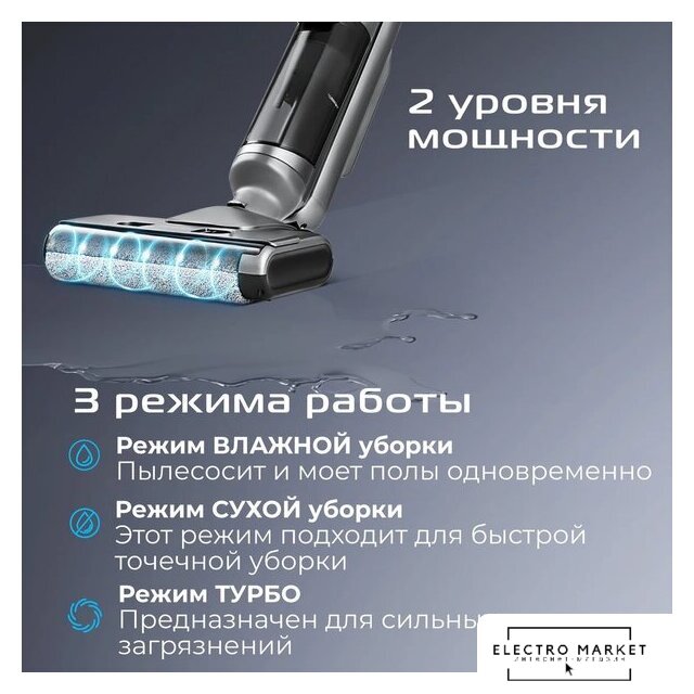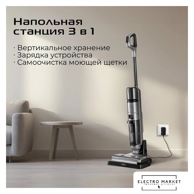 вертикальный моющий, аккумулятор, потребление: 400 Вт, регулировка мощности, турбощетка, док-станция с самоочисткой и зарядкой