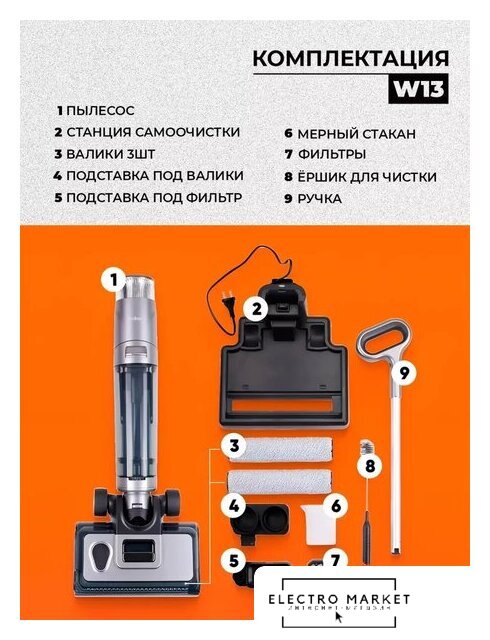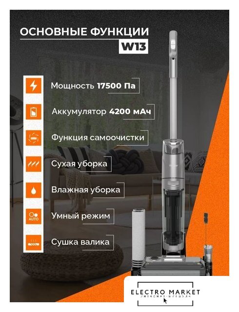 вертикальный моющий, аккумулятор, регулировка мощности, турбощетка, док-станция с самоочисткой и зарядкой