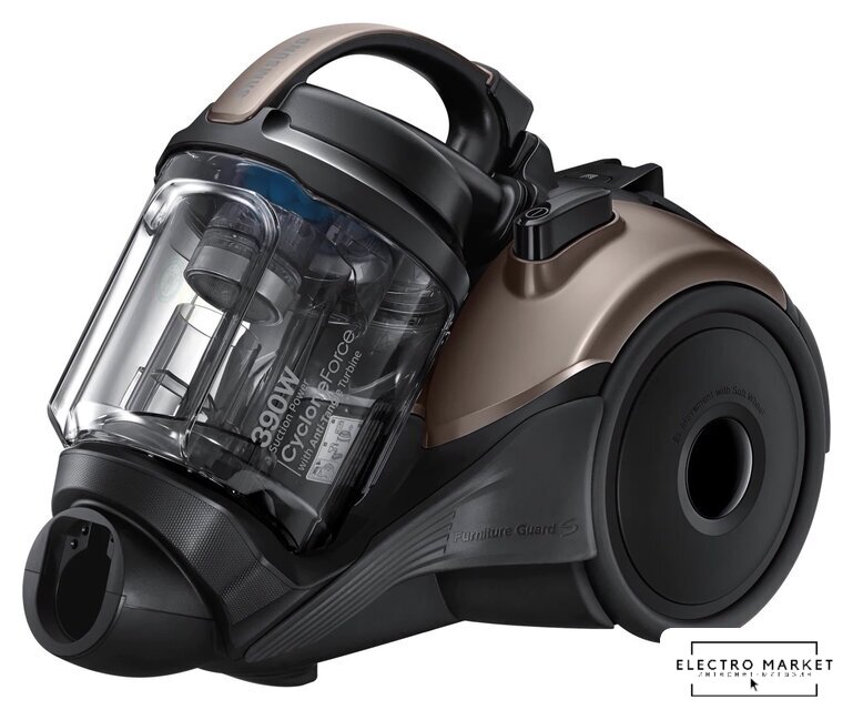 с контейнером, пылесборник: контейнер, мощность всасывания: 430 Вт, потребление: 2200 Вт, регулировка мощности на ручке, шум 80 дБ