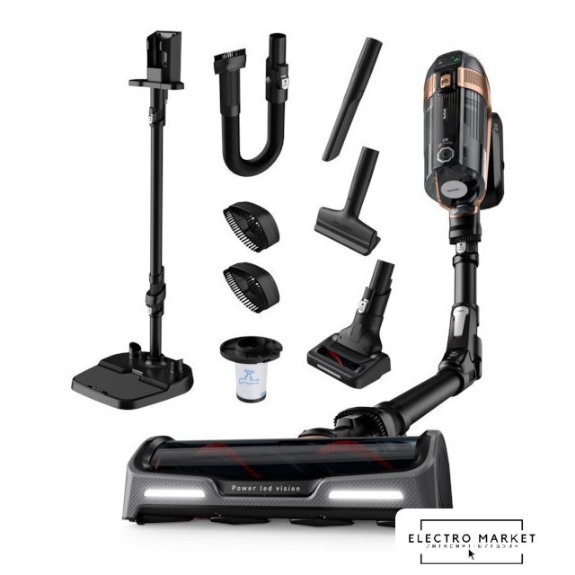 вертикальный 2-в-1, аккумулятор, мощность всасывания: 310 Вт, потребление: 855 Вт, регулировка мощности, турбощетка, док-станция с самоочисткой и зарядкой, шум 89 дБ