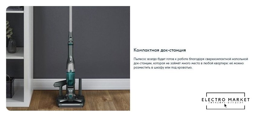 вертикальный 2-в-1, аккумулятор, мощность всасывания: 230 Вт, потребление: 680 Вт, регулировка мощности, турбощетка, док-станция без зарядки