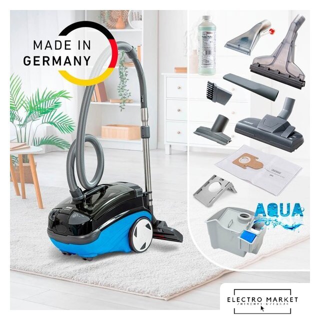 классический с аквафильтром, сеть, мощность всасывания: 350 Вт, потребление: 1800 Вт, регулировка мощности, турбощетка, шум 91 дБ
