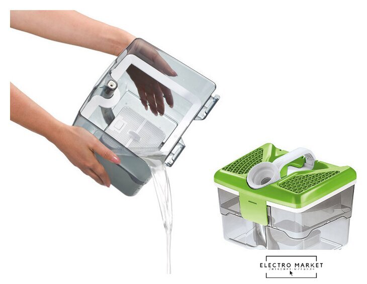 стандартный, пылесборник: аквафильтр, мощность всасывания: 320 Вт, потребление: 1600 Вт, труба: сталь, регулировка мощности на корпусе, шум 81 дБ
