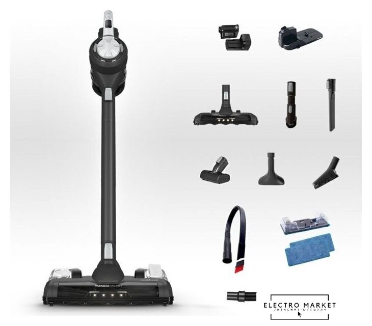вертикальный 2-в-1, аккумулятор, потребление: 450 Вт, регулировка мощности, турбощетка, док-станция с зарядкой, шум 60 дБ