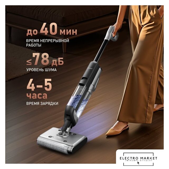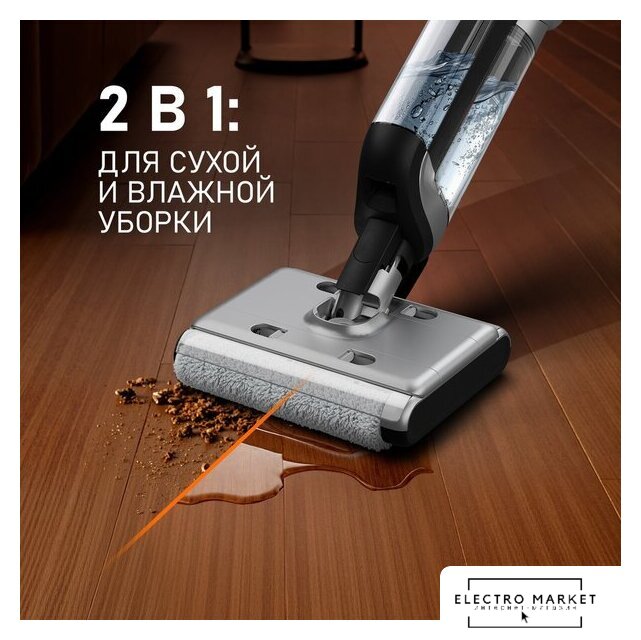| Функциональные особенности | всасывание жидкостей, дисплей, автоматическая мойка швабры, автоматическая сушка швабры |