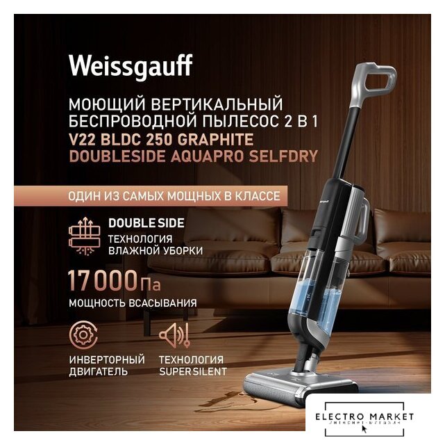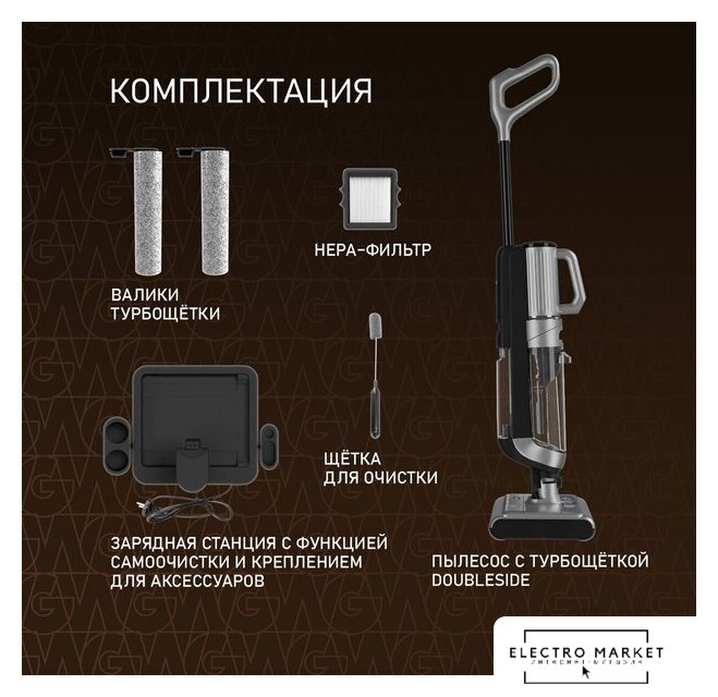 вертикальный моющий, аккумулятор, регулировка мощности, турбощетка, док-станция с самоочисткой и зарядкой