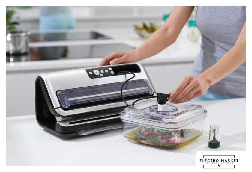 однокамерный, 280 Вт, 70 л/мин, пакет/контейнер, нержавеющая сталь/черный