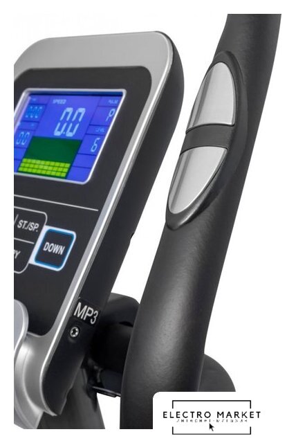 Показания на дисплее | Время тренировки, Скорость, Пройденная дистанция, Уровень нагрузки, Скорость вращения педалей, Израсходованные калории, Пульс, Температура |