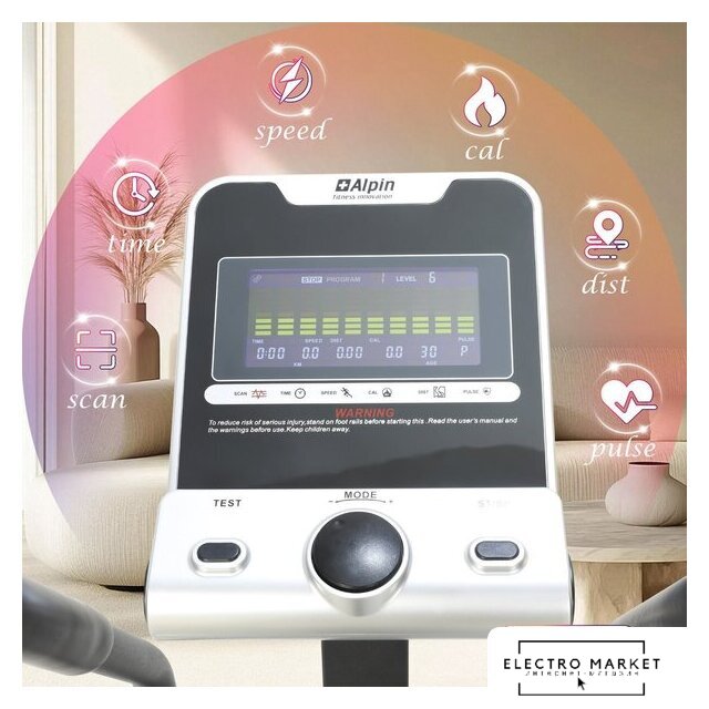 | Особенности | Прочная рама с двухслойной покраскойПодвижные поручни с оплеткой из пенорезиныТрехкомпонентный педальный узелСенсорные датчики пульсаМногофункциональный LCD-дисплей 5.5 дюймаСистема энергосбереженияРасширенная гарантия 2 года |