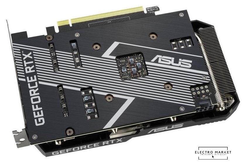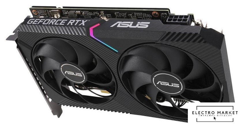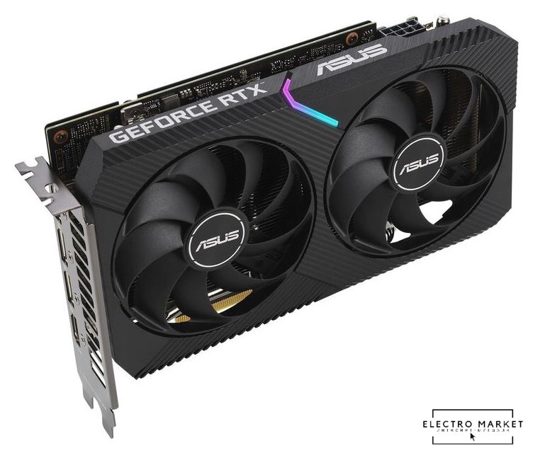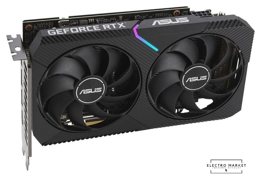 8 ГБ GDDR6 LHR, 1320 МГц / 1807 МГц, 3584sp, 28 RT-ядер, трассировка лучей, 128 бит, 2 слота, питание 8 pin, HDMI, DisplayPort