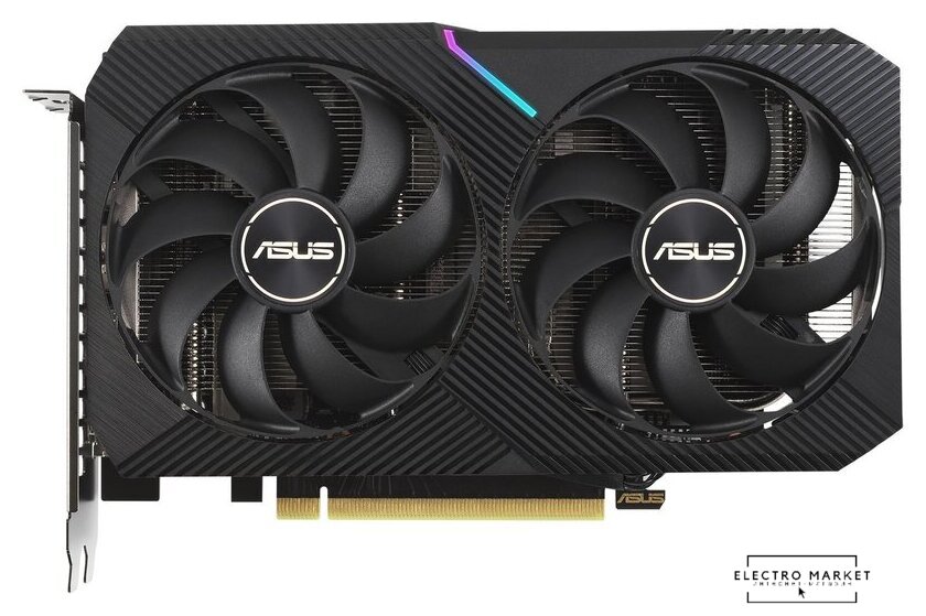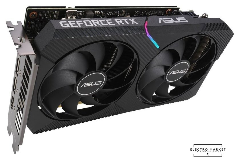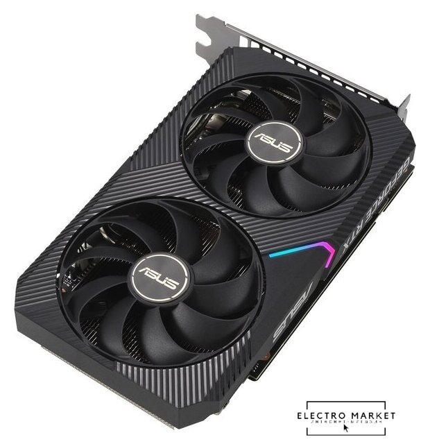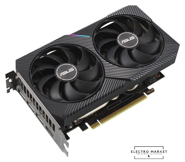 8 ГБ GDDR6 LHR, 1320 МГц / 1807 МГц, 3584sp, 28 RT-ядер, трассировка лучей, 128 бит, 2 слота, питание 8 pin, HDMI, DisplayPort