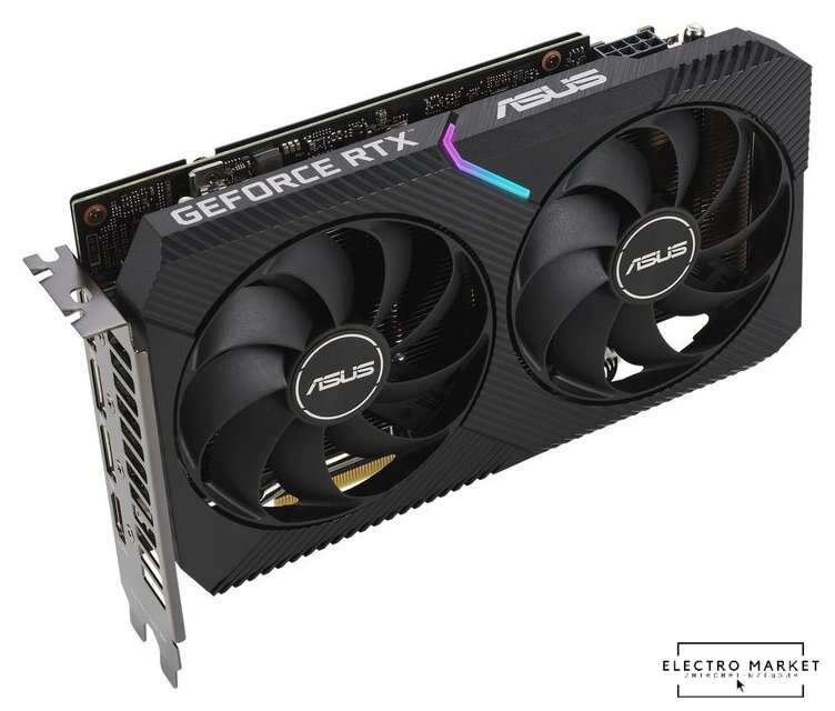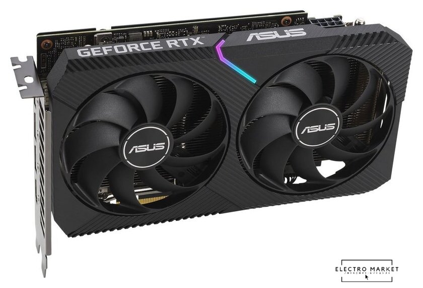 NVIDIA GeForce RTX 3060, базовая частота 1320 МГц, макс. частота 1807 МГц, 3584sp, частота памяти 15000 МГц, 192 бит, доп. питание: 8 pin, 2 слота, HDMI, DisplayPort