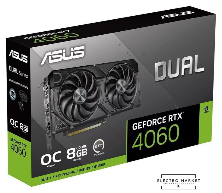 8 ГБ GDDR6, 1830 МГц / 2535 МГц, 3072sp, 24 RT-ядер, трассировка лучей, 128 бит, 2 слота, питание 8 pin, HDMI, DisplayPort