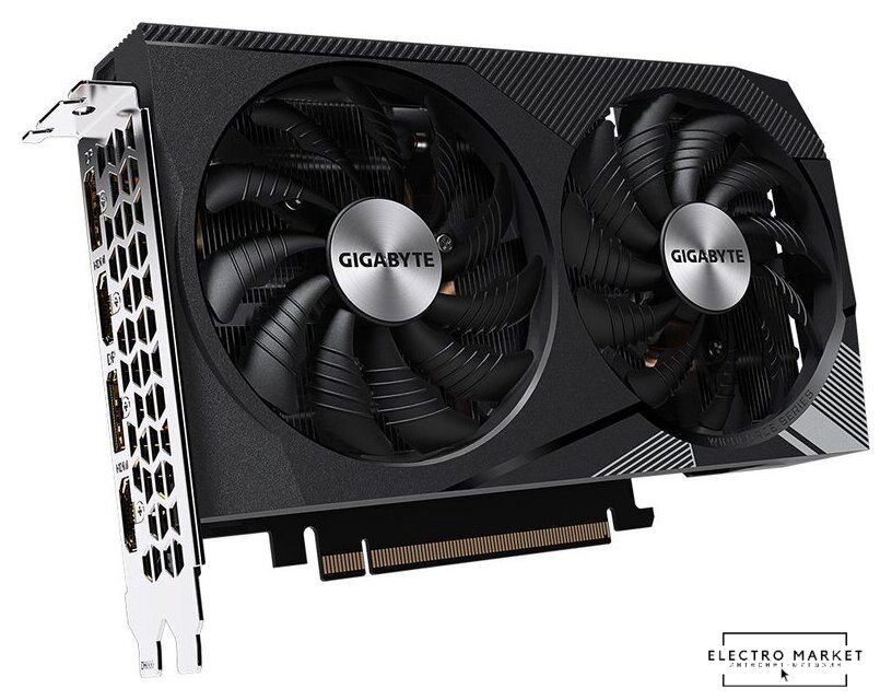8 ГБ GDDR6 LHR, 1320 МГц / 1807 МГц, 3584sp, 28 RT-ядер, трассировка лучей, 128 бит, 2 слота, питание 8 pin, HDMI, DisplayPort