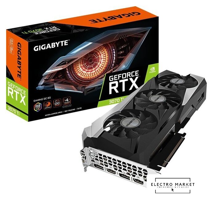 12 ГБ GDDR6X, 1920 МГц / 2475 МГц, 5888sp, 46 RT-ядер, трассировка лучей, 192 бит, 2 слота, питание 8 pin, HDMI, DisplayPort