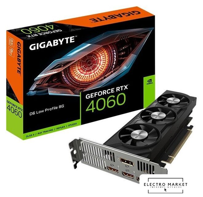 8 ГБ GDDR6, 1830 МГц / 2460 МГц, 3072sp, 24 RT-ядер, трассировка лучей, 128 бит, 2 слота, питание 8 pin, HDMI, DisplayPort