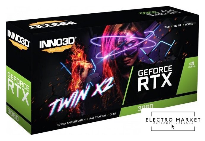 12 ГБ GDDR6 LHR, 1320 МГц / 1792 МГц, 3584sp, 28 RT-ядер, трассировка лучей, 192 бит, 2 слота, питание 8 pin, HDMI, DisplayPort