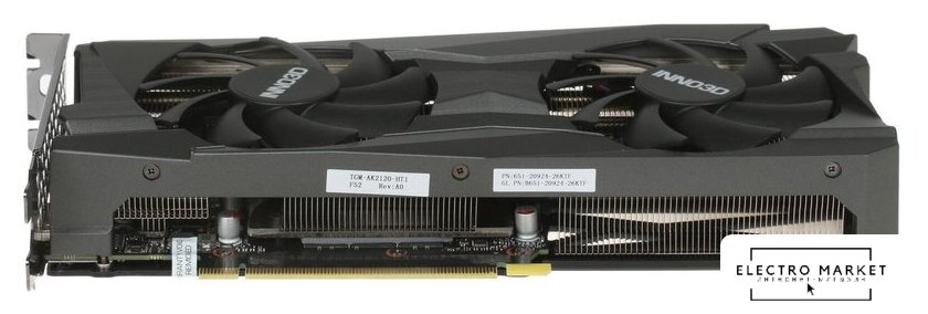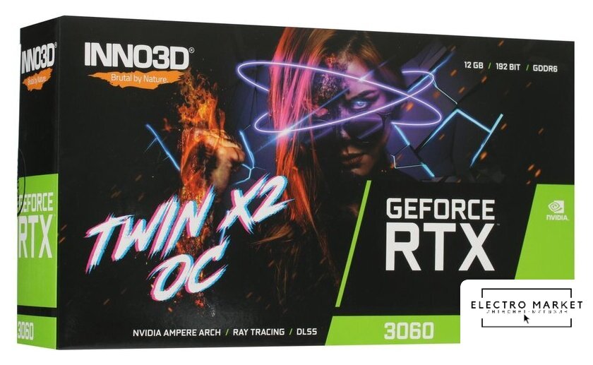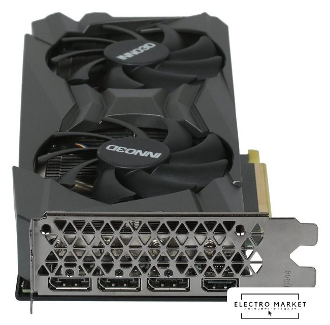 12 ГБ GDDR6 LHR, 1320 МГц / 1837 МГц, 3584sp, 28 RT-ядер, трассировка лучей, 192 бит, 2 слота, питание 8 pin, HDMI, DisplayPort