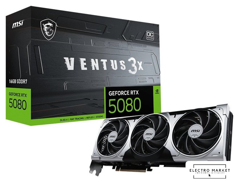 16 ГБ GDDR7, 2300 МГц, 10752sp, 84 RT-ядер, трассировка лучей, 256 бит, 2 слота, питание 16 pin (PCIe Gen5), HDMI, DisplayPort