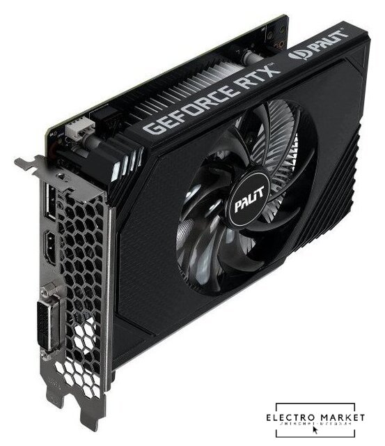 6 ГБ GDDR6 LHR, 1507 МГц / 1537 МГц, 2304sp, 20 RT-ядер, трассировка лучей, 96 бит, 2 слота, питание нет, HDMI, DisplayPort, DVI