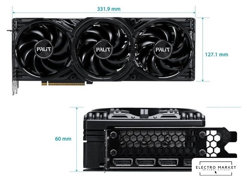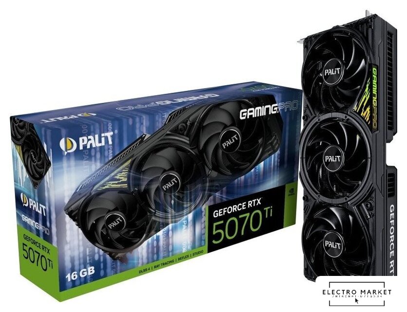 16 ГБ GDDR7, 2300 МГц, 8960sp, 70 RT-ядер, трассировка лучей, 256 бит, 2 слота, питание 16 pin (PCIe Gen5), HDMI, DisplayPort