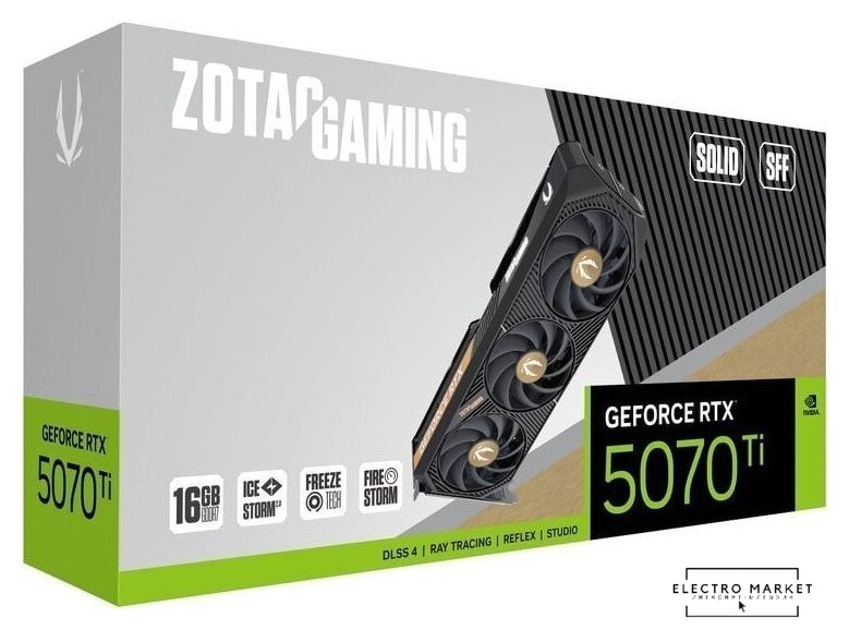 16 ГБ GDDR7, 2300 МГц, 8960sp, 70 RT-ядер, трассировка лучей, 256 бит, 3 слота, питание 16 pin (PCIe Gen5), HDMI, DisplayPort