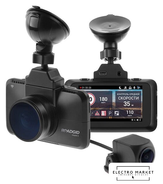 основная камера: 3.5 Мп 170°, видео 2560x1440 H.265, GPS, G-сенсор, экран 3"