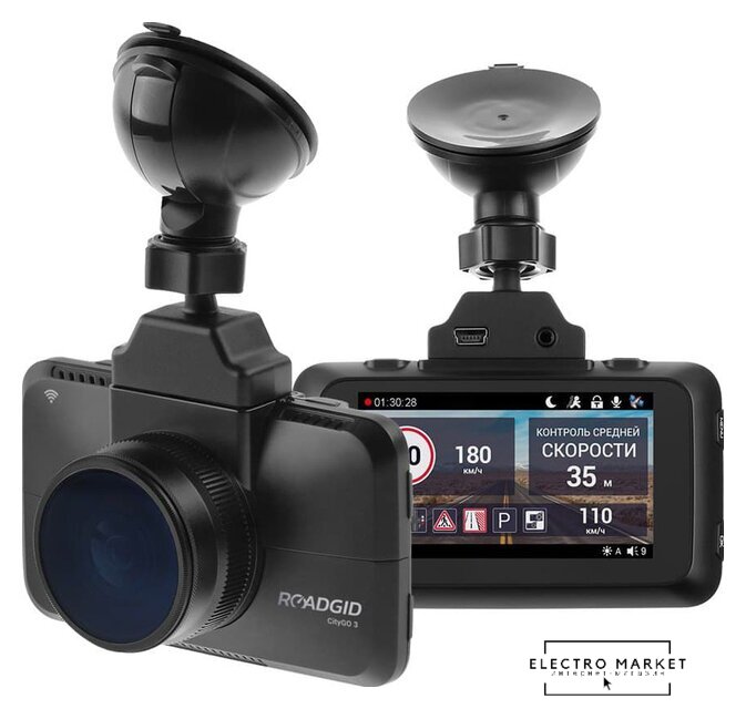 основная камера: 2 Мп 170°, вторая камера: 2 Мп, видео 1920x1080 H.265, GPS, G-сенсор, экран 3"