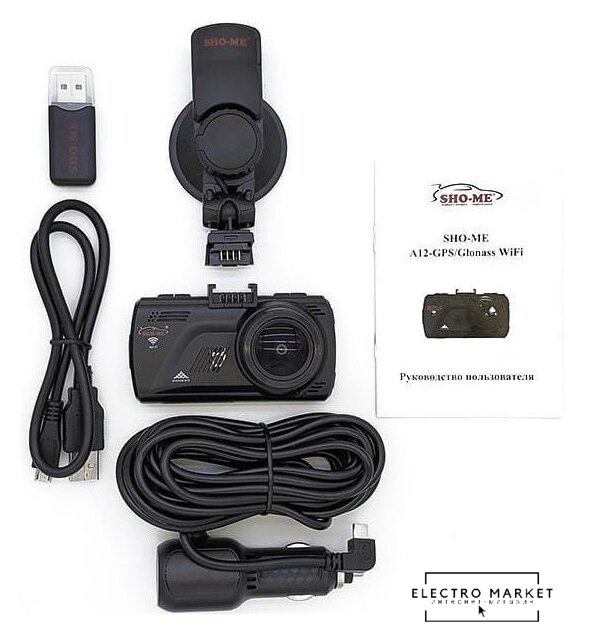 Комплектация | - Видеорегистратор SHO-ME A12-GPS/ГЛОНАСС WIFI- Провод питания для подключения в гнездо прикуривателя- Провод USB- Крепление с присоской- Руководство пользователя |