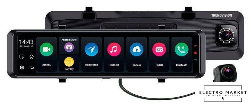 Комплектация | - Видеорегистратор-зеркало TrendVision aMirror 15 Android UNIVERSE- Задняя камера с удлинителем для задней камеры- 3М скотч для задней камеры- Шурупы для задней камеры- Резиновые стяжки- GPS-модуль- Контроллер бесперебойного питания HardWare Kit- Картридер- Микрофибровая салфетка- Инструкция с гарантийным талоном |