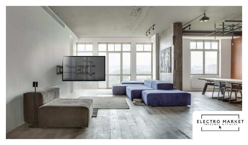 настенный/потолочный кронштейн для ЖК-монитора 32-70", наклон 15°, поворот 60°, цвет черный