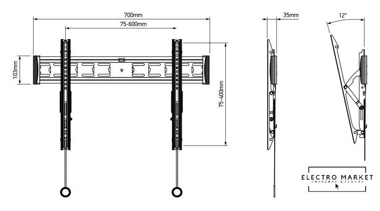 настенный кронштейн для ЖК-телевизора 32-65", наклон 12°, цвет черный