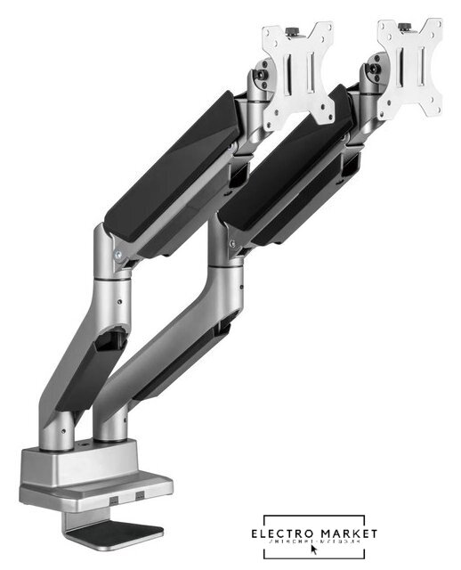 для мониторов, 17-32", 2 монитора, настольный, поворотный, с регулировкой высоты, кабель-канал, наклон 50°, поворот 180°, цвет черный