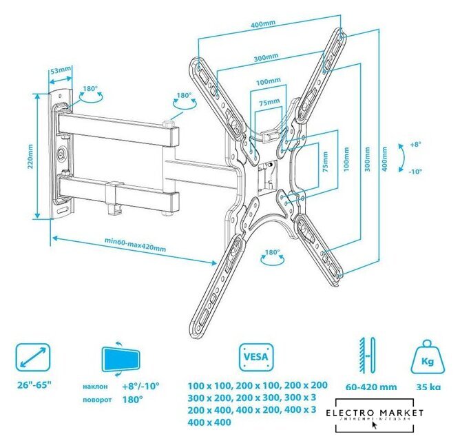 | Тип | кронштейн для телевизора |