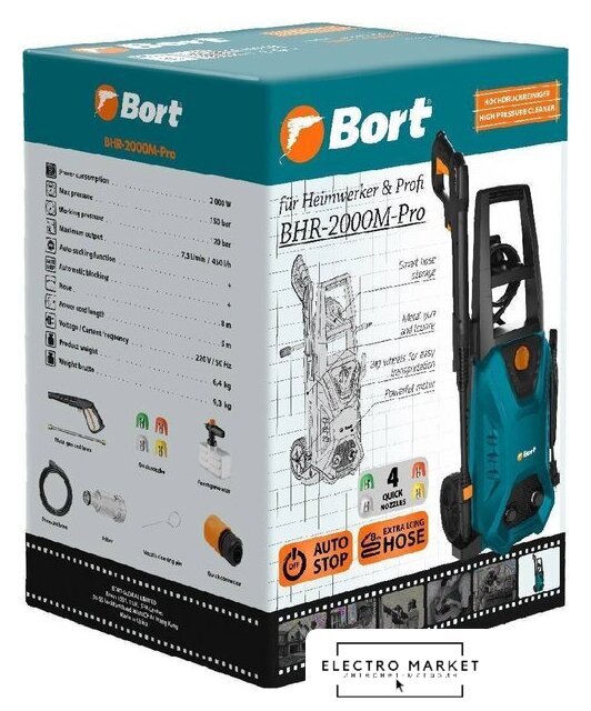 2500 Вт, 450 л/ч, максимальное рабочее давление: 120 Бар, максимальная температура на входе: 50 °C, длина шланга: 8 м