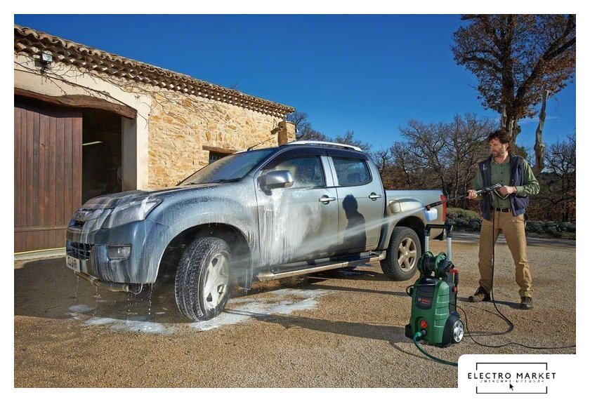 2100 Вт, 500 л/ч, максимальное рабочее давление: 120 Бар, максимальная температура на входе: 40 °C, длина шланга: 8 м