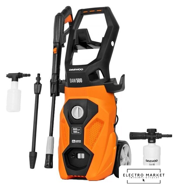 | Комплектация | - Мойка высокого давления - Пистолет - Шланг высокого давления - Насадка на пистолет распылительная - Грязевая фреза- Дополнительный фильтр тонкой очистки - Игла для прочистки сопла - Руководство пользователя - Пеногенератор- Пеногенератор Daewoo Power DAW 10 |