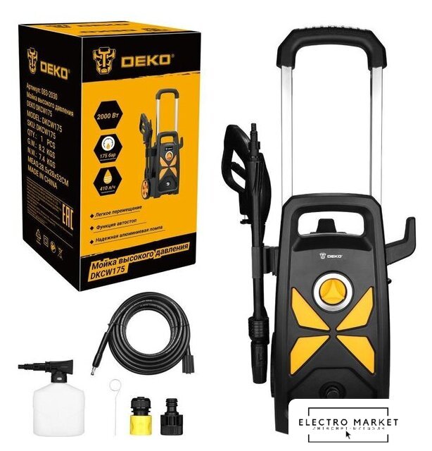 Комплектация | - Мойка высокого давления - 1 шт.- Ручка - 1 шт.- Держатель шланга - 1 шт.- Держатель шнура питания - 1 шт.- Коннектор для подачи воды - 1 шт.- Быстроразъемное соединение - 1 шт.- Высоконапорный пистолет - 1 шт.- Распылительная трубка - 1 шт.- Шланг высокого давления - 1 шт.- Емкость для моющих средств - 1 шт.- Насадка-распылитель - 1 шт.- Игла для прочистки распыляющего наконечника - 1 шт.- Крепежный комплект - 1 шт.- Руководство по эксплуатации- Коробка |