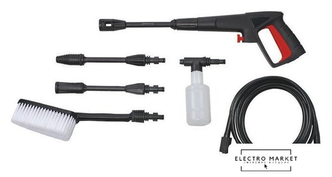 | Комплектация | - пистолет,, - 5 метровый шланг,, - трубка,, - турботрубка,, - насадка для пены,, - щетка. |