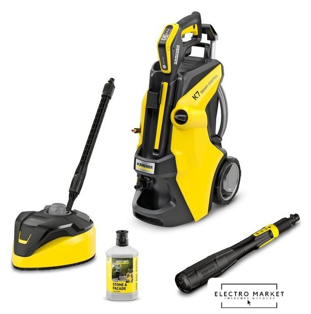 Комплектация | - Домашний комплект: очиститель поверхности T 7, очиститель камня и фасада, 3 в 1, 1 л;- Пистолет высокого давления: G 180 Q Smart Control;- 3 в 1 Multi Jet;- Шланг высокого давления: 10 м, PremiumFlex;- Адаптер для соединителя садового шланга A3/4". |