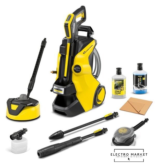 Комплектация | - Домашний комплект: очиститель поверхности T 5, очиститель камня и фасада, 3 в 1, 1 л;- Комплект для чистки автомобиля: вращающаяся щетка для мытья, пенная струя 0,3 л, автомобильный шампунь 3 в 1, 1 л;- Сухая ткань;- Пистолет высокого давления: G 160 Q Power Control;- Vario Power Jet;- Грязевая фреза;- Шланг высокого давления: 10 м, PremiumFlex;- Адаптер для соединителя садового шланга A3/4". |